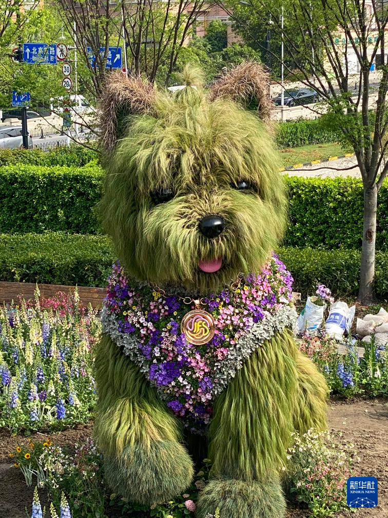 新华网上海4月11日电(记者陈浩明)近日,位于上海市静安区苏河万象天地的一条“毛茸茸的植物小狗”在社交媒体走红,这是将于4月18日开幕的上海国际花卉节静安分会场的一个景点——“花漾萌宠乐园”。