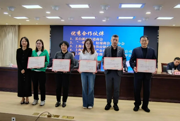 与会领导为长白新村街道优秀企业代表颁发了荣誉证书