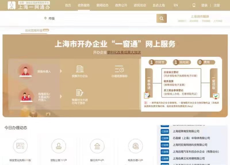上海市开办企业“一窗通”网上服务平台的网页。上海市市场监管局供图