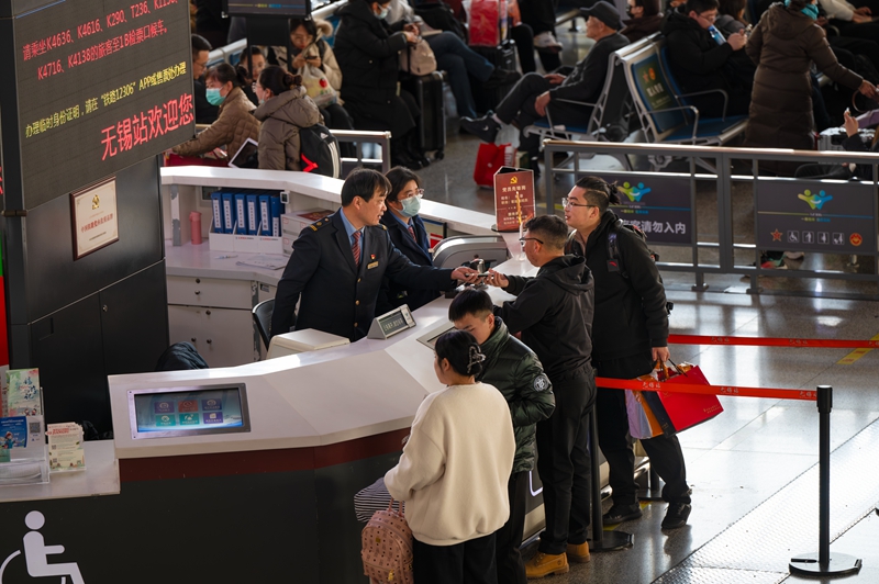 无锡站“太湖明珠”雷锋服务站做好旅客问询服务。张博伦摄 新华网发