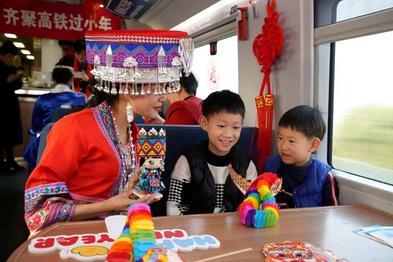 春运首日,长三角铁路80多个大型客运车站、近10趟列车组织开展“2025福至运来 情满旅途——江苏省千名书法家送万福进万家活动”“2025长三角‘超级环线’高铁挂春联暨‘金舞银蛇’生肖版画贺新春活动”等百余场活动。80余家地方文联、千余名驻会书法家和书法家代表,会同铁路书法家和书法爱好者挥毫泼墨、写春送福,为春运旅途增添浓郁墨香和传统韵味。