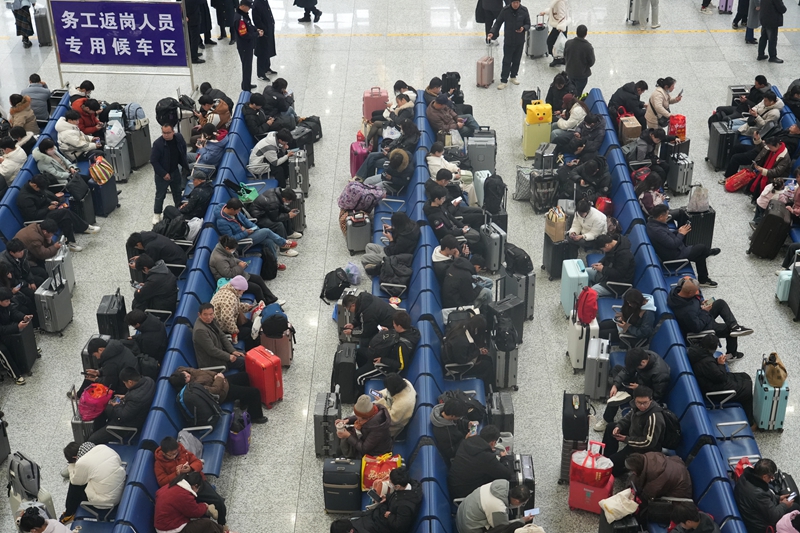 阜阳务工人员在阜阳西站候车专区等候乘车。张续亮摄 新华网发