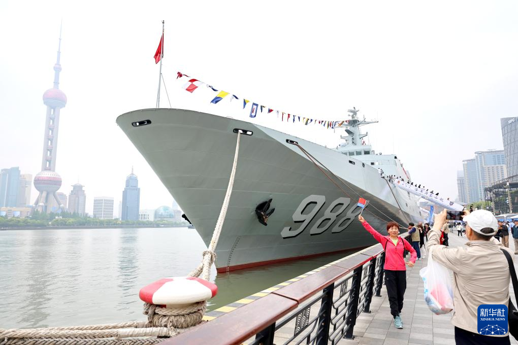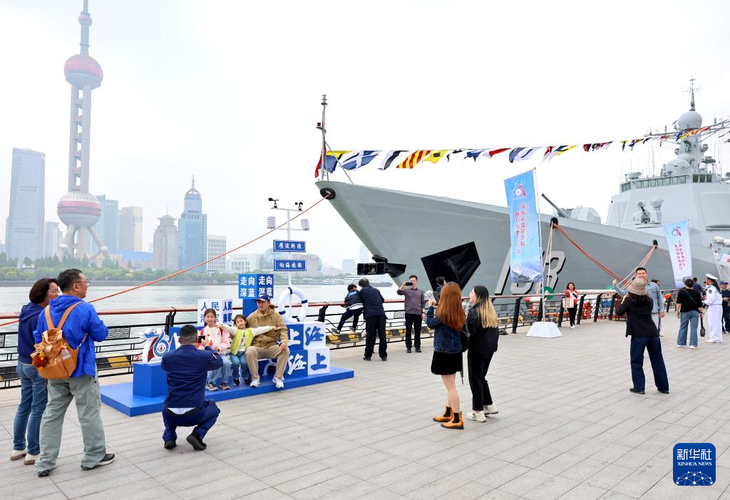 当日,在人民海军成立76周年之际,驻沪海军部队联合上海市双拥办共同组织以“上海·海上”为主题的舰艇开放活动。两艘海军现役主战舰艇综合登陆舰沂蒙山舰和导弹驱逐舰西安舰靠泊上海港国际客运中心码头,市民游客不仅能够登舰参观,还在现场观看和参与文艺表演和国防教育科普活动。