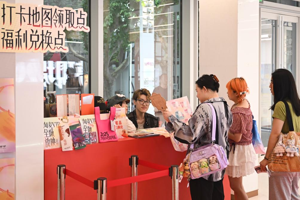 6月14日,影迷在上海影城“打卡地图领取点、福利兑换点”咨询。
