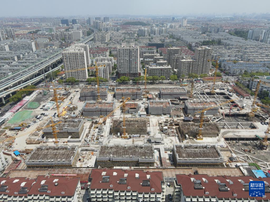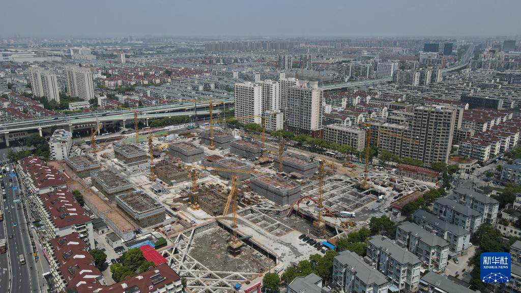空中俯瞰上海市静安区彭一小区非成套旧住房改造工程建设工地(无人机照片,2023年5月25日摄)。