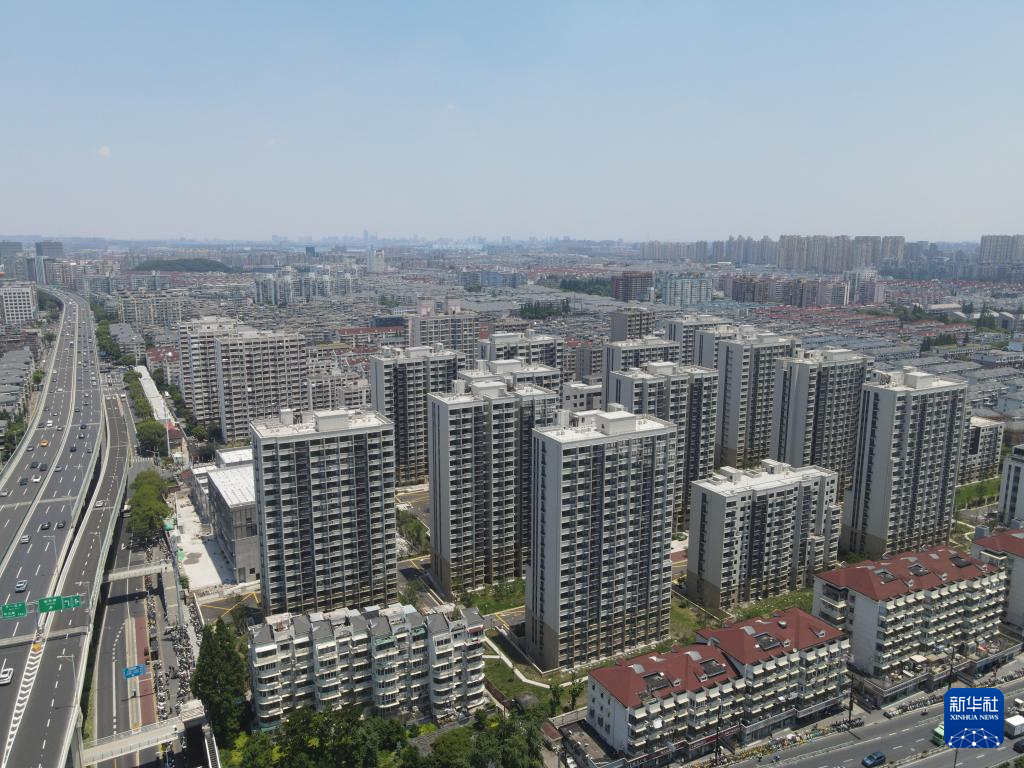 空中俯瞰建成后的上海市静安区彭一小区非成套旧住房改造工程(无人机照片,2025年6月27日摄)。
