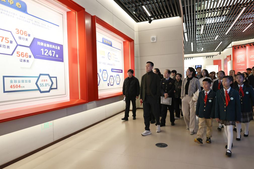 12月6日,参观者在浦东开发开放主题展上听讲解员作介绍。