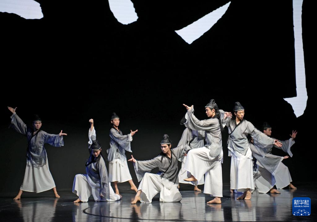 1月9日,上海歌剧院的舞者在展演活动表演舞蹈《永字八法》。
