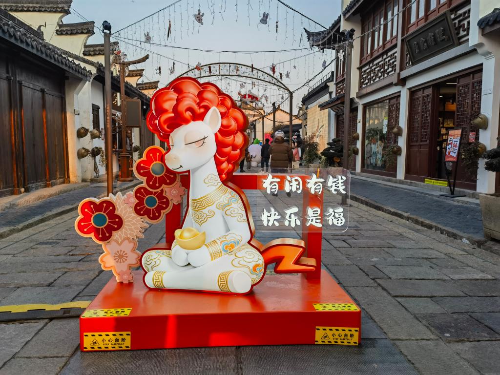 走出上海灯彩主题特展空间,人们在泗泾古镇逛起新春市集、走进非遗体验馆、购买“上海礼物”文创商品、参与线上线下集章打卡、邂逅手游“NPC(非玩家角色)”、观看安方塔“光绘泗泾”光影秀等,迎接颇具烟火气的海派新年。