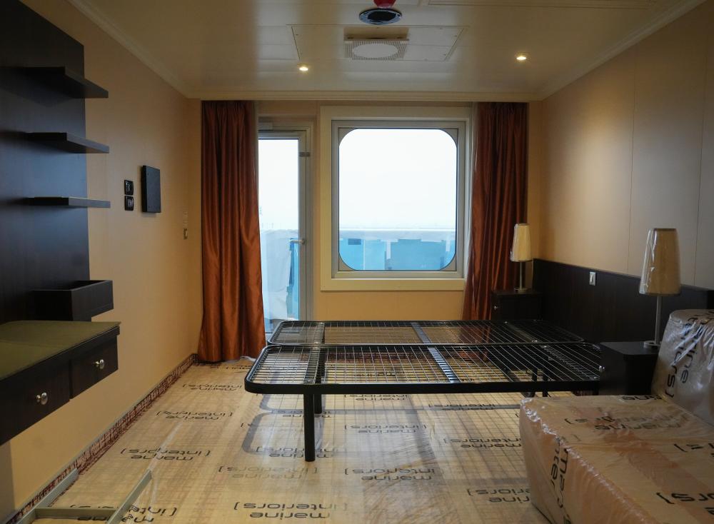 3月16日拍摄的第二艘国产大型邮轮“爱达·花城号”船舱内部,内装工程仍在进行中。